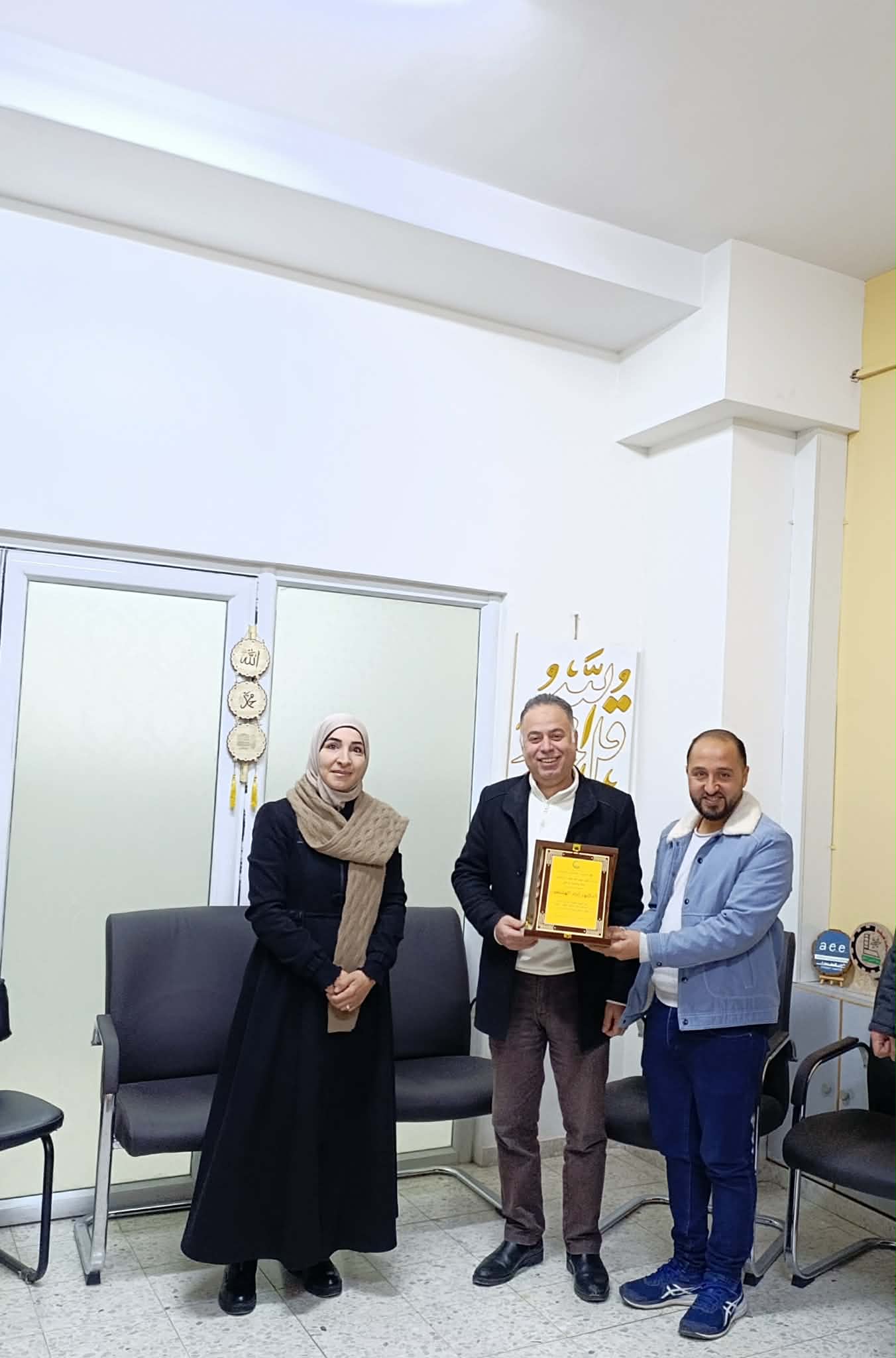 خلال اللقاء جرى تكريم الدكتور اياد بدرع تقديراً و عرفاناً بجهوده المتميزة وعطائه خلال فترة توليه مهام العمادة وتقديراً لما قدمه من اسهامات في تطوير مسيرة الكلية